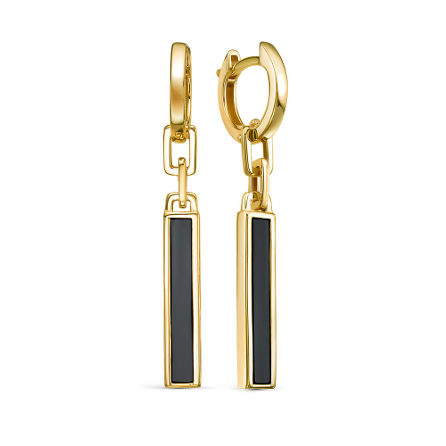 Удлинённые серьги с вставками из чёрного оникса и подвесками , выполнены в жёлтом золоте 585 пробы