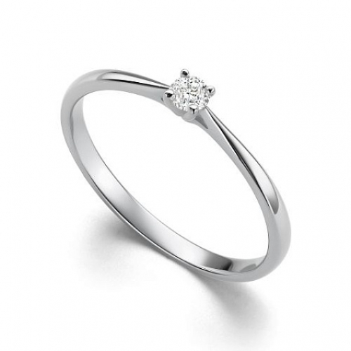 Кольцо выполнено из белого золота 585 пробы, украшено в центре сияющим бриллиантом