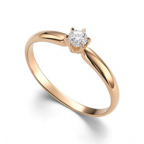 Кольцо классического дизайна, с роскошным сверкающим бриллиантом в центре, выполнено из красного золота 585 пробы