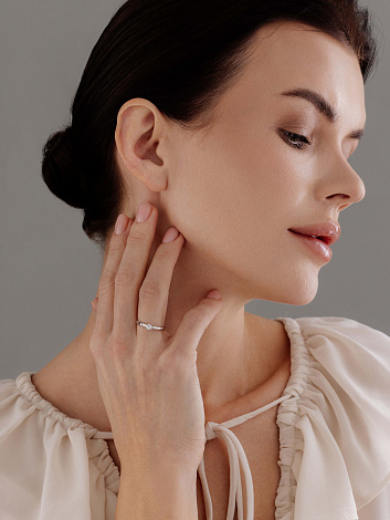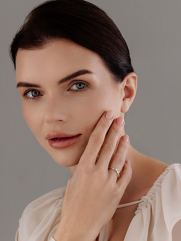 Кольцо классического дизайна с роскошным сверкающим бриллиантом выполнено из белого золота 585 пробы