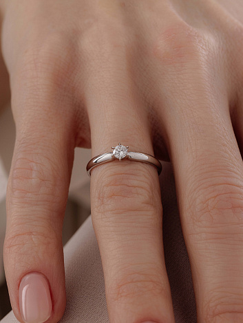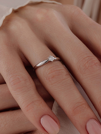 Кольцо классического дизайна с роскошным сверкающим бриллиантом выполнено из белого золота 585 пробы. Белое золото визуально увеличивает объём бриллианта и подчеркивает его блеск и природную красоту. Изделие представлено брендом "Алькор". Средняя характеристика камней на артикул:1 Бриллиант Круг 57 0.167 3/7 . К украшению прилагается сертификат от производителя о подлинности драгоценных камней. В комплект поставки входит: