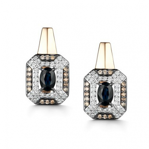 Роскошные серьги. выполнены из красного золота 585 пробы, украшены сапфирами в окружении сияющих бриллиантов. Огранка бриллиантов позволяет лучам света играть на их поверхности, делая их ещё более искристыми, а оправа сапфиров максимально раскрывает их насыщенный цвет, делая более заметными и привлекательными. Такое украшение станет модной изюминкой в повседневном или деловом образе. Тип замка - английский, самый надежный и удобный. Изделие представлено брендом "АЛЬКОР". Средняя характеристика камней на артикул: 2 Сапфир Овал 1.158 2/2 32 Бриллиант Круг 57 0.189 7/6 коньяк 64 Бриллиант Круг 17 0.25 2/3 В комплект поставки входит: