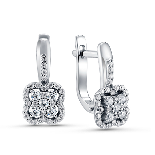 Нежные удлинённые серьги, украшенные сверкающей россыпью бриллиантов, выполнены в белом золоте 585 пробы