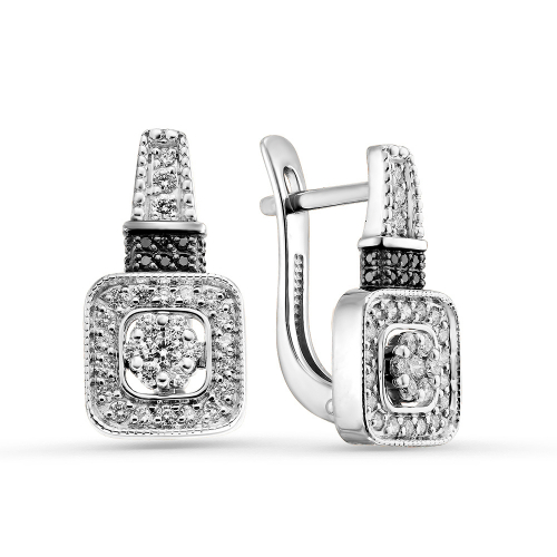 Нежные серьги, украшенные сверкающей россыпью разноцветных бриллиантов, выполнены в белом золоте 585 пробы
