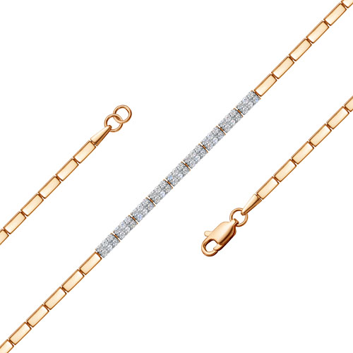 Браслет, украшенный дорожками белых бриллиантов, выполнен из красного золота 585 пробы