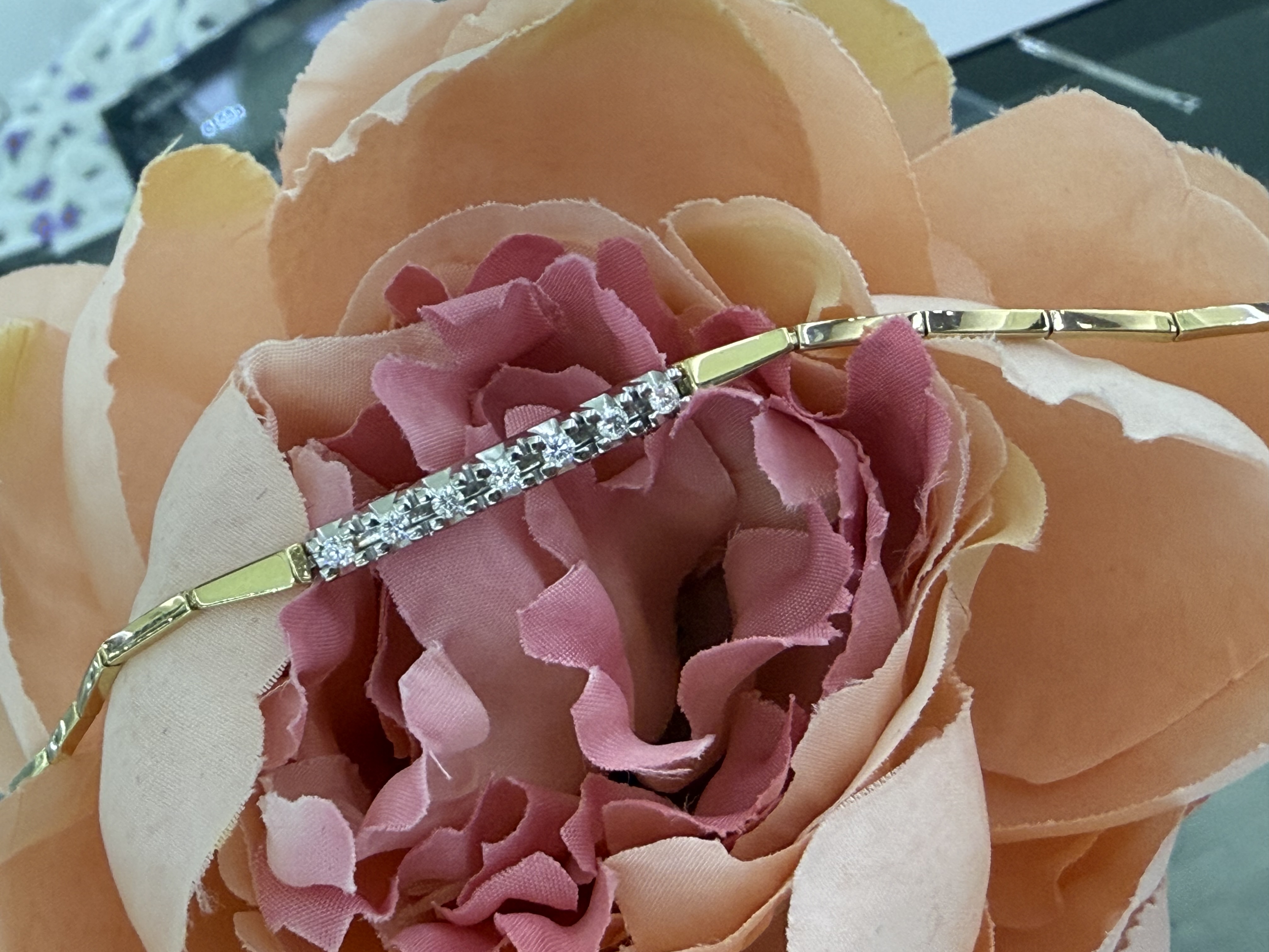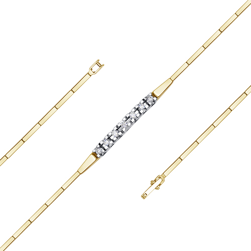 Браслет, украшенный дорожкой белых бриллиантов, выполнен из желтого золота 585 пробы