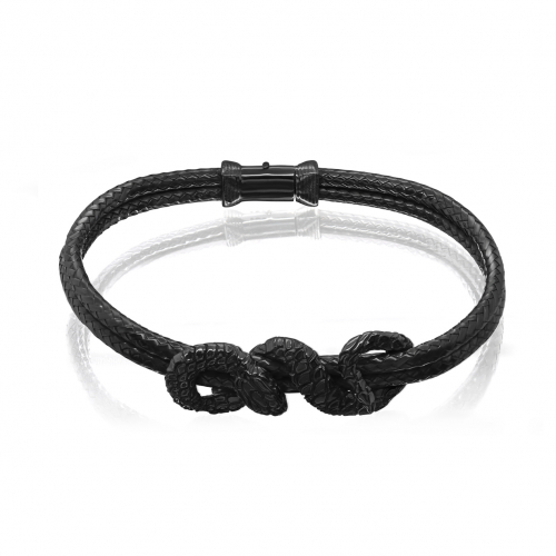 Браслет в черном цвете со змеей, насыщенный цвет которого подчёркивают фианиты, выполнен из серебра 925 пробы