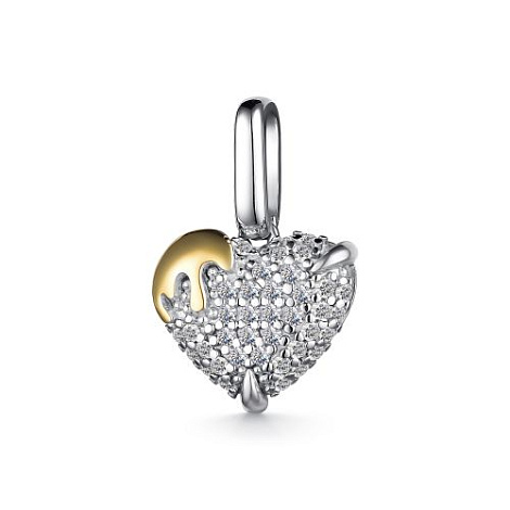 Подвеска в виде обьемного сердца, выполнена из серебра 925 пробы, украшена россыпью сверкающих фианитов