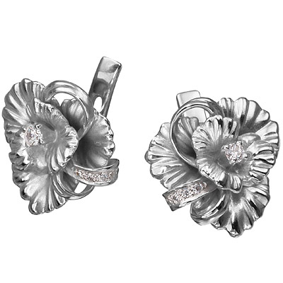 Серьги в виде цветка выполнены из серебра 925 пробы,с кристаллами Сваровски,от бренда Альзена