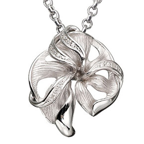 Нежная подвеска "Весна" из серебра 925 пробы выполнена в виде цветочного мотива, обвитого лентами с фианитами swarovski.