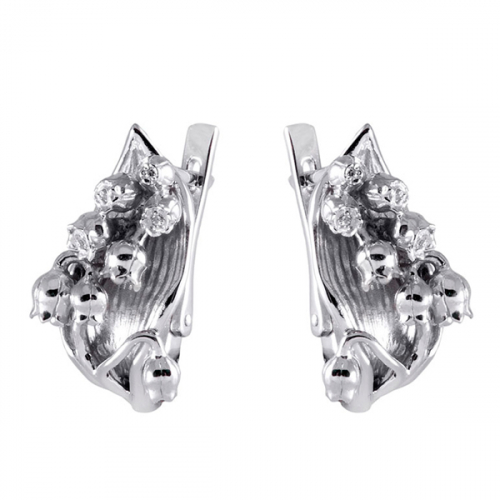 Объемные эффектные серьги "Ландыш серебристый" выполнены в серебре 925 пробы, украшенные фианитами