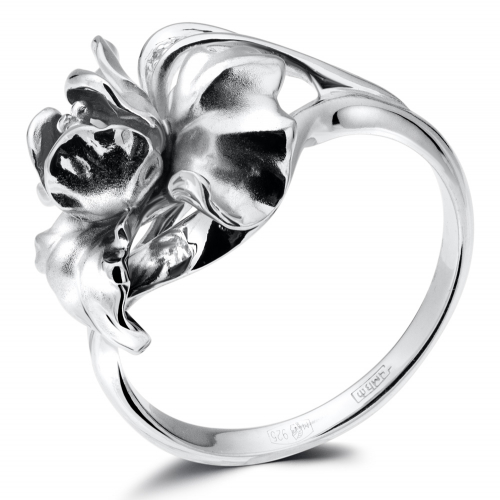 Нежное кольцо с флористическими акцентами выполнено из серебра 925 пробы