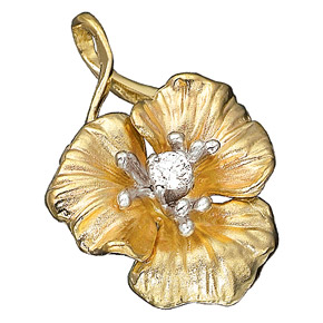 Нежная подвеска, в виде открытого цветка , выполнена из желтого золота 585 пробы, украшена сверкающим бриллиантом.