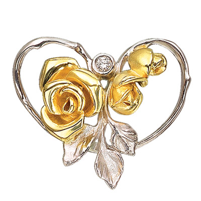 Красивая подвеска "Роза" в виде сердечка с распустившимся цветком внутри выполнена в сочетании белого и желтого золота 585 пробы.