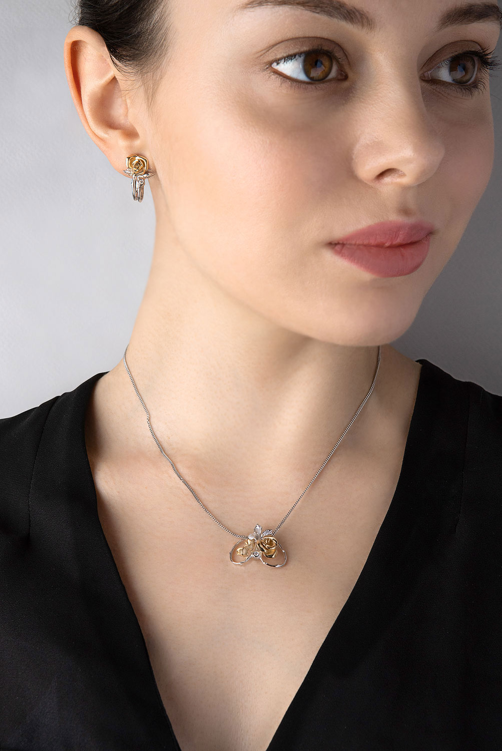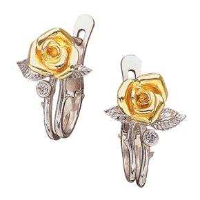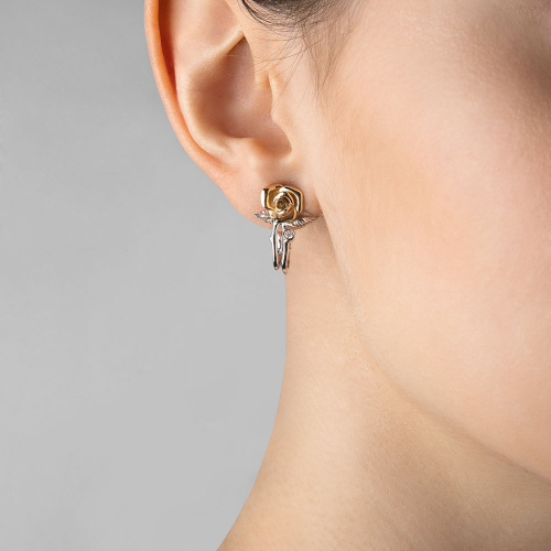 Очаровательные серьги «Роза», созданные в гармоничном сочетании белого и жёлтого золота 585 пробы, словно раскрывают перед вами красоту природы