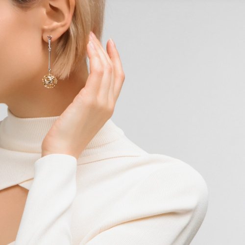 Стильные удлинённые серьги с ажурными подвесками, из серии "Для любимой" от бренда АЛЬДZЕНА, выполнены с сочетанием жёлтого и белого золота 585 пробы, украшены бриллиантами. Оригинальный дизайн и сияние бриллиантов привлекают внимание с первого взгляда. Тип замка - английский, самый надежный и удобный.