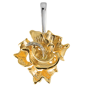 Восхитительная подвеска "Вивальди" выполнена в сочетании белого и желтого золота 585 пробы и инкрустирована бриллиантами.