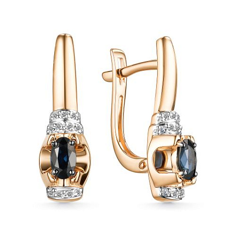 Серьги с натуральными сапфирами, насыщенный цвет которых подчёркивают дорожки бриллиантов, выполнены с сочетанием красного и белого золота 585 пробы