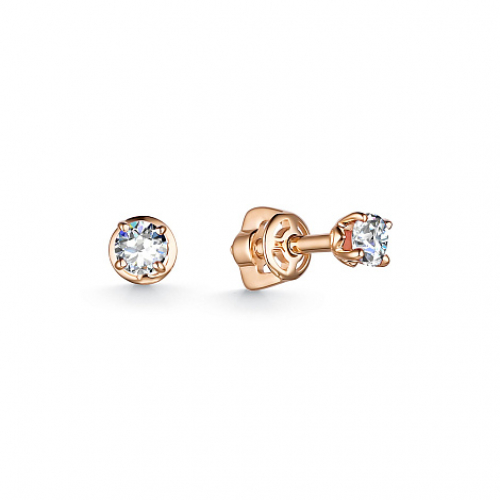 Изящные серьги-пусеты с великолепными сияющими бриллиантами выполнены из красного золота 585 пробы