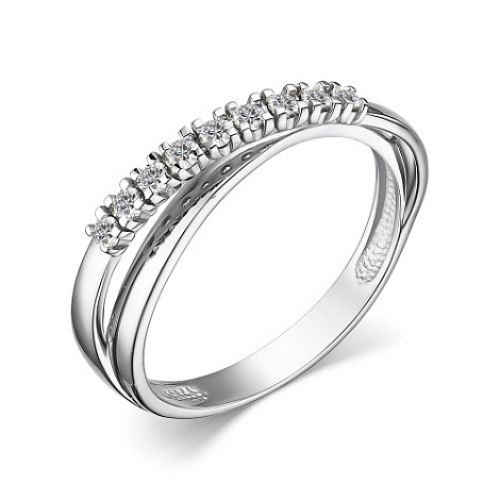 Стильное кольцо, украшенное дорожкой сверкающих бриллиантов, выполнено из белого золота 585 пробы