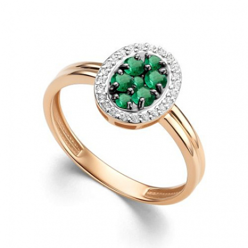 Кольцо с изумрудом и бриллиантами из белого и красного золота 585 пробы
