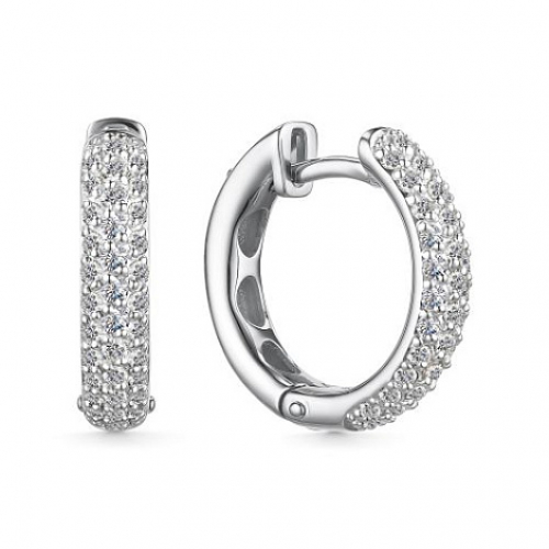 Роскошные серьги - конго, украшенны дорожками сверкающих бриллиантов, выполнены из белого золота 585 пробы