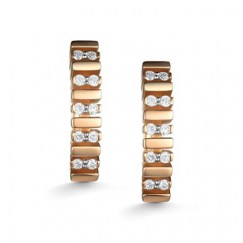 Элегантные серьги украшенные дорожками сверкающих бриллиантов, выполнены из красного золота 585 пробы