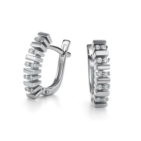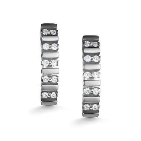 Стильные серьги, украшенные дорожками сверкающих бриллиантов, выполнены из белого золота 585 пробы