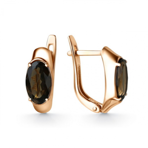 Современные, модные серьги из красного золота 585 пробы, украшены великолепными Раух-топазами. Блеск и красоту драгоценного металла подчёркивает нежность и игривость камней. Это украшение станет модной изюминкой в повседневном или деловом образе. Тип замка - английский, самый надежный и удобный. Изделие представлено брендом ЛЕНА ТОММИ. В комплект поставки входит: