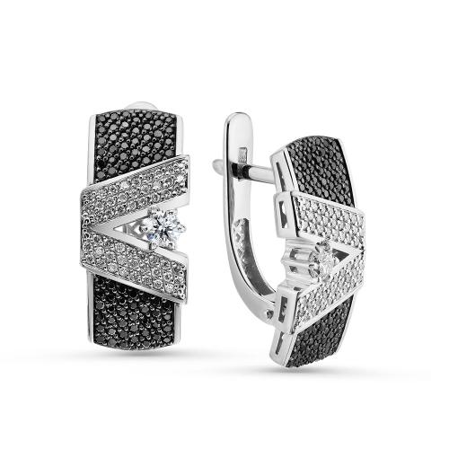 Роскошные серьги,украшенные чёрными и бесцветными сверкающими бриллиантами из белого золота 585 пробы