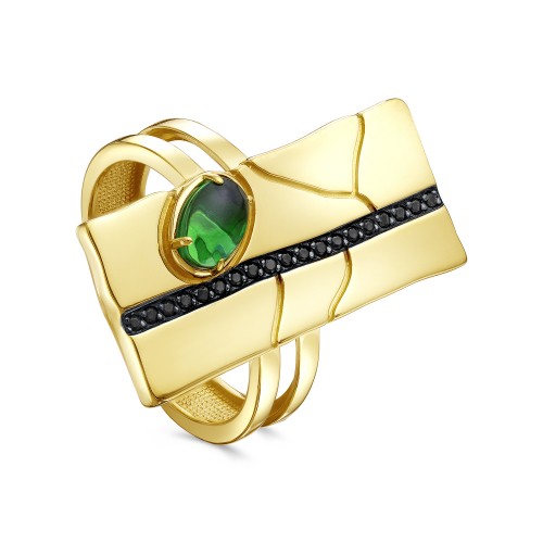 Оригинальное кольцо в авангардном стиле из серебра 925 пробы украшено черными фианитами. Украшение покрыто металлом платиновой группы - золоченым родием, он защищает серебро от потемнения и придает искрящийся яркий блеск. Безупречный стиль и изысканная красота в каждой детали. Кольцо входит в коллекцию " Сокровища Ацтеков" от бренда Kabarovsky . Средняя характеристика камней: 19 Фианит Круг 1,00|1 Фианит Овал кабошон 6х4 В комплект поставки входит: