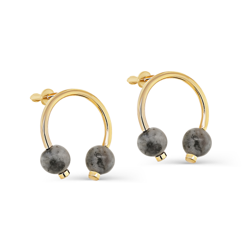 Великолепные серьги-пусеты, украшены лабрадоритами из серебра 925 пробы, с применением технологии золочения и родирования