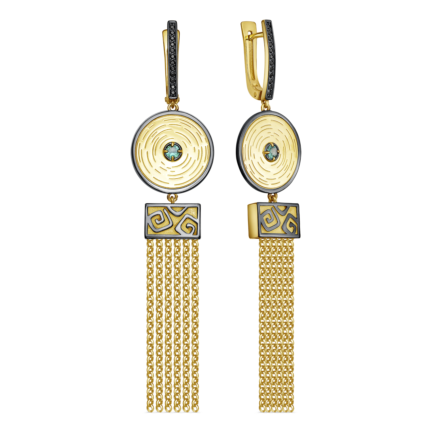 Великолепные серьги из серебра 925 пробы, с применением технологии золочения и родирования, украшены натуральными изумрудами и дорожками из черных фианитов .Серьги входит в коллекцию " Сокровища Ацтеков" от бренда Kabarovsky. Такое украшение не оставит вас незаметной и дополнит ваш образ. Средняя характеристика камней: 24 Фианит Круг 1,00|2 Изумруд Круг 3,00 3/3 0.204ct В комплект поставки входит: