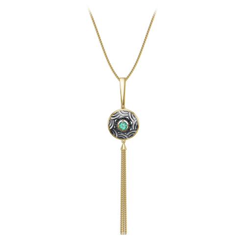 Колье из серебра 925 пробы, с применением технологии золочения и родирования, украшены натуральными изумрудами и черными фианитами