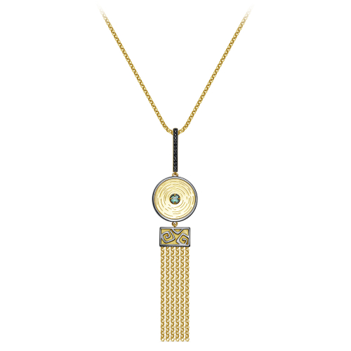 Колье цепочкой из серебра 925 пробы, с применением технологии золочения и родирования, украшены натуральным изумрудом и дорожками из черных фианитов