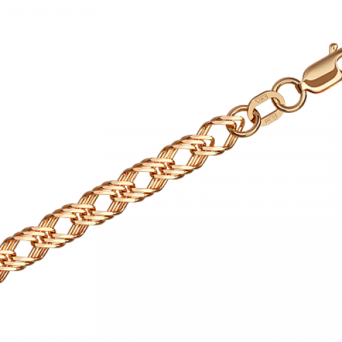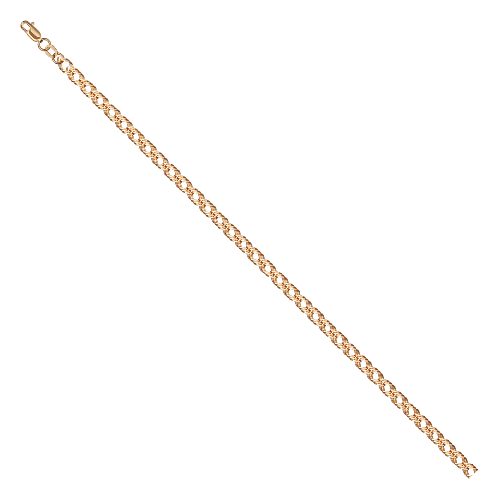 Облегчённая цепь из красного золота 585 пробы с оригинальным плетением «Тройной ромб» и великолепной отделкой алмазной гранью