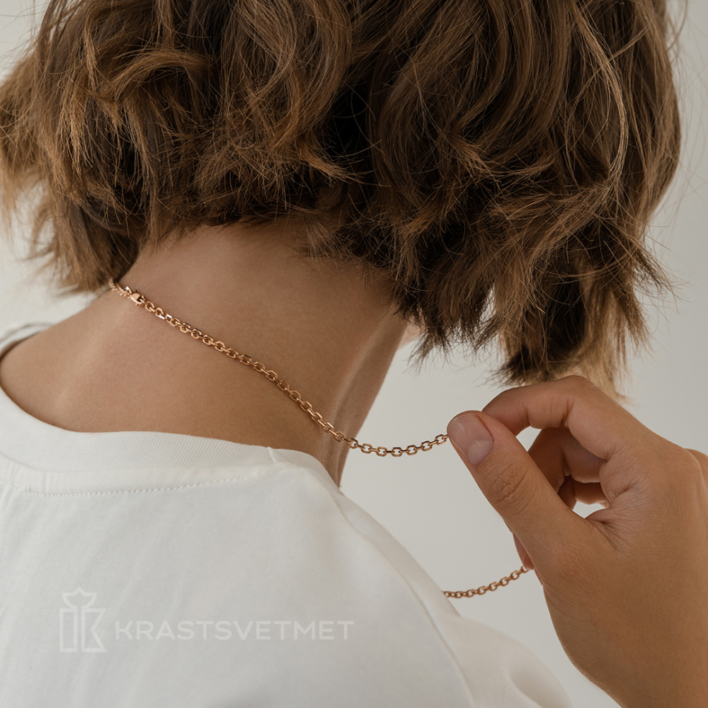 Полновесная крупная цепь из красного золота 585 пробы с классическим плетением «Якорное» и овальными звеньями