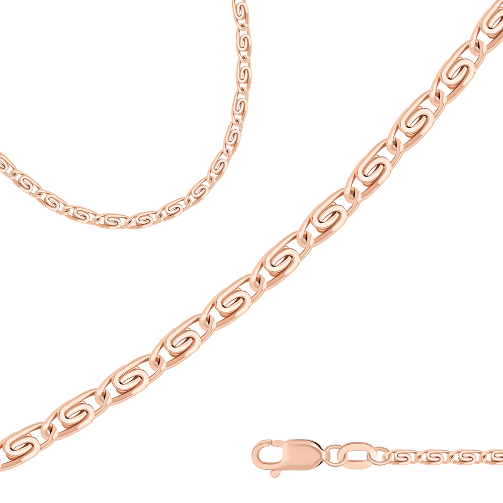 Полновесная цепь из теплого красного золота 585 пробы с оригинальным плетением «Улитка» («Скрепка»)