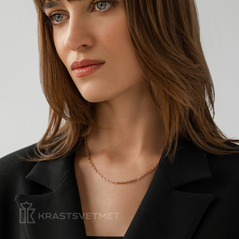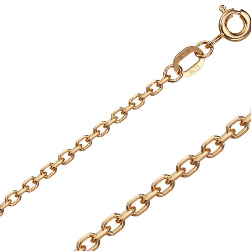 Крупная цепь из красного золота 585 пробы с плетением «Якорное» и удлинёнными звеньями овальной формы, оснащённая искусной обработкой алмазной грани
