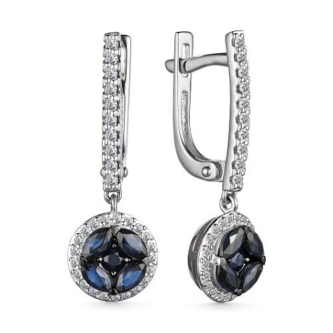 Нежные удлинённые серьги с подвеской круглой формы украшенной сапфирами и бриллиантами, выполнены из белого золота 585 пробы. Элегантный дизайн и сверкающие драгоценные камни создают атмосферу роскоши и изысканности, которая будет радовать вас каждый день. Тип замка - английский, самый надежный и удобный. Изделие представлено брендом АЛЬКОР. Средняя характеристика камня на артикул: 2 Сапфир Круг 0.16 2/2, 42 Бриллиант Круг 17 0.133 2/3, 8 Сапфир Маркиз 0.95 2/2, 20 Бриллиант Круг 17 0.15 2/3. К украшению прилагается сертификат от производителя о подлинности драгоценных камней. В комплект поставки входит: