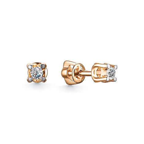 Стильные серьги-пусеты, выполнены из красного золота 585 пробы, украшены сияющими бриллиантами. Тип замка - винтовой, надежный и удобный. Изделие представлено брендом Алькор. Средняя характеристика камней на артикул: 2 Бриллиант Круг 57 0.151 4/6.