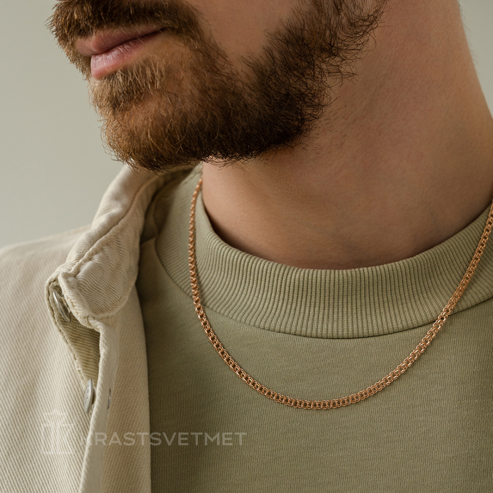 Полновесная цепь из красного золота с мощным плетением «Бисмарк Гарибальди» и деликатной отделкой алмазной грани