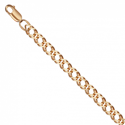 Браслет классического плетения "Двойной ромб" с алмазной гранью выполнен из красного золота 585 пробы