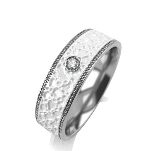 Роскошное обручальное кольцо выполнено из белого золота 585 пробы с керамическим покрытием белого цвета и украшено великолепным сияющим бриллиантом. Закрепка бриллианта в белом золоте придает объем и подчеркивает его природную красоту и игру света.
