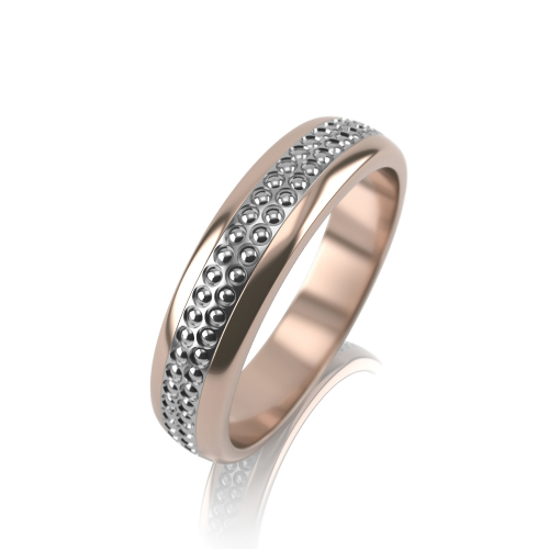 Нежное кольцо в сочетании красного и белого золота с ювелирной зернью от бренда Graf Кольцов. Ювелирная зернь - это особый вид обработки золота, при котором поверхность смотрится очень оригинально, она искрится и играет и имитирует камни, отличается такой вид обработки особой практичностью и блеском. Ширина кольца 4 мм.