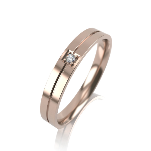 Стильное парное обручальное кольцо из красного золота в виде шайбы с один бриллиантом.