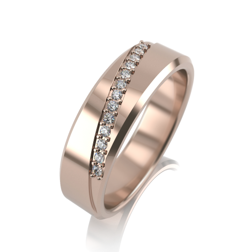 Стильное обручальное кольцо из красного золота 585 пробы, украшенное россыпью бриллиантов.