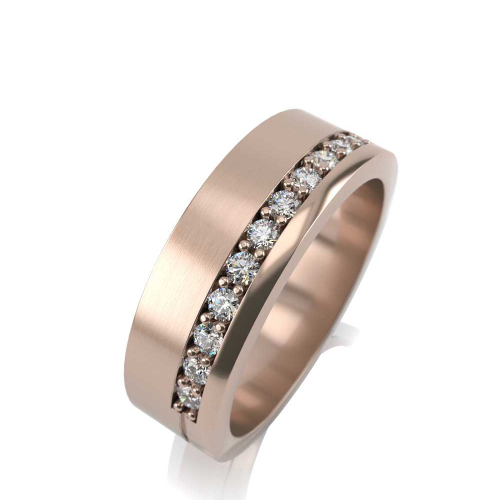 Обручальное кольцо из красного золота 585 пробы, украшенное россыпью бриллиантов