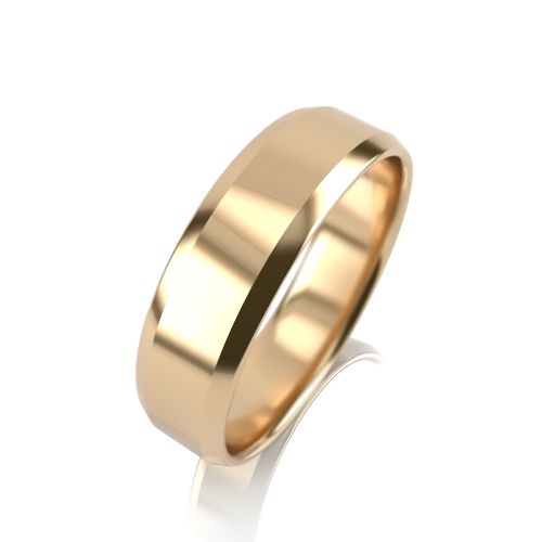 Полновесное обручальное кольцо с прямым профилем "шайба", выполнено из желтого золота 585 пробы, особую оригинальность кольцу придают ускрящиеся скошенные края в сочетании с идеально гладкой поверхностью кольца