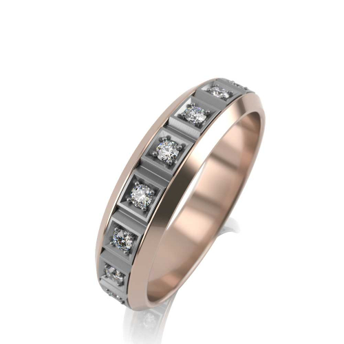 Шикарное обручальное кольцо из белого и красного золота 585 пробы, украшенное россыпью бриллиантов.